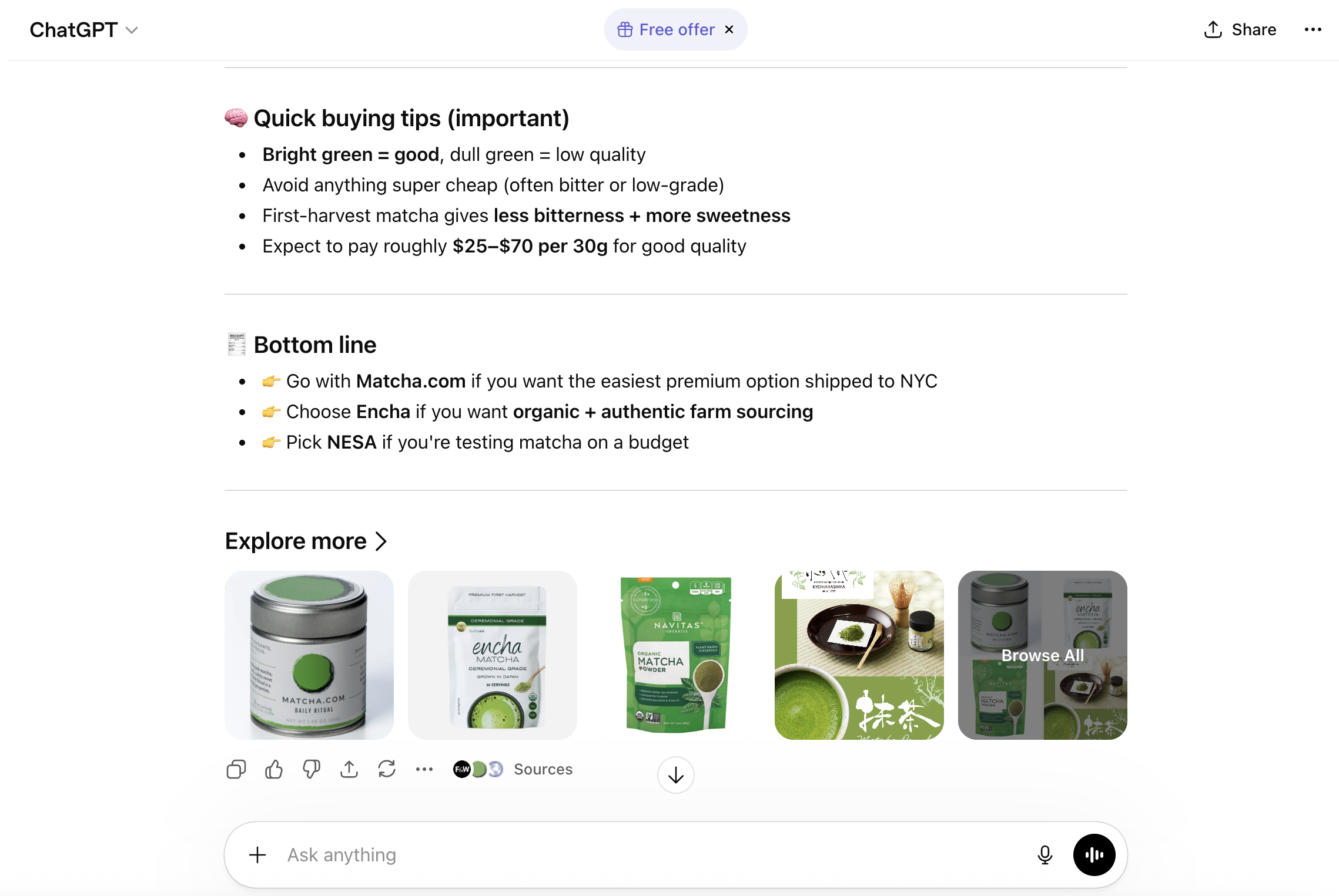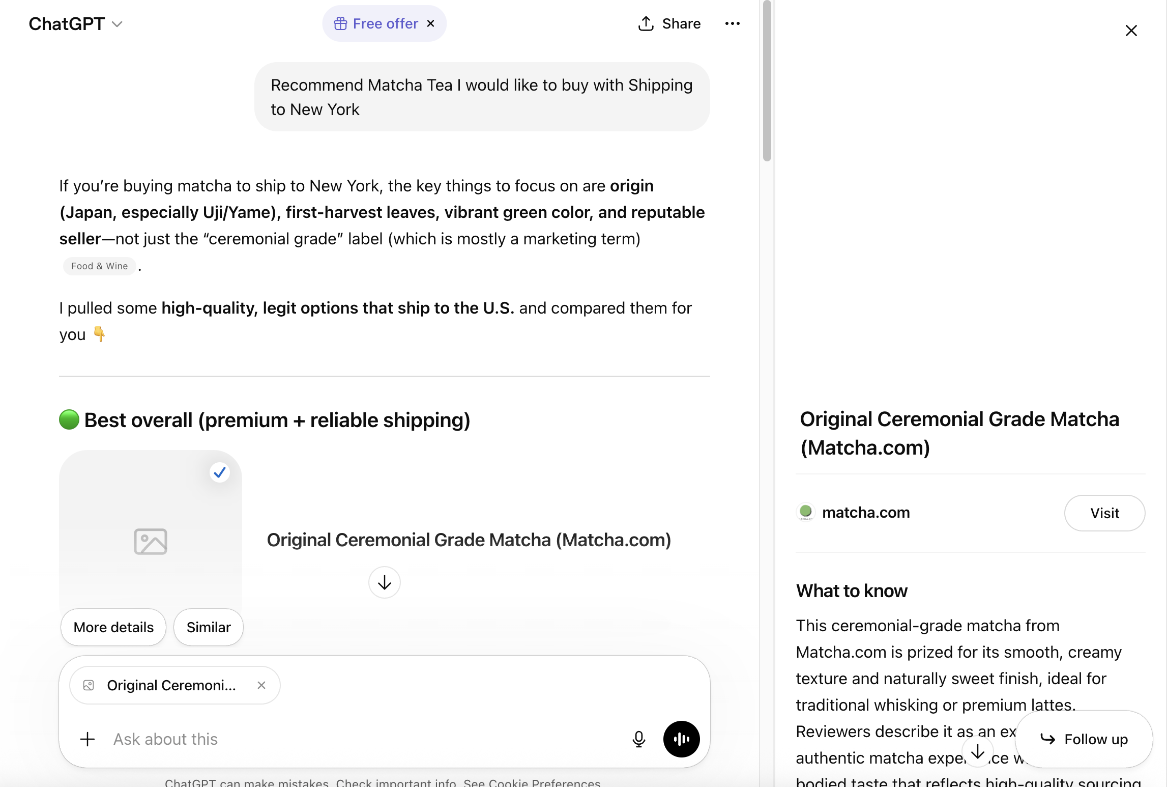 "Best ceremonial grade matcha under $30 shipped to the US."