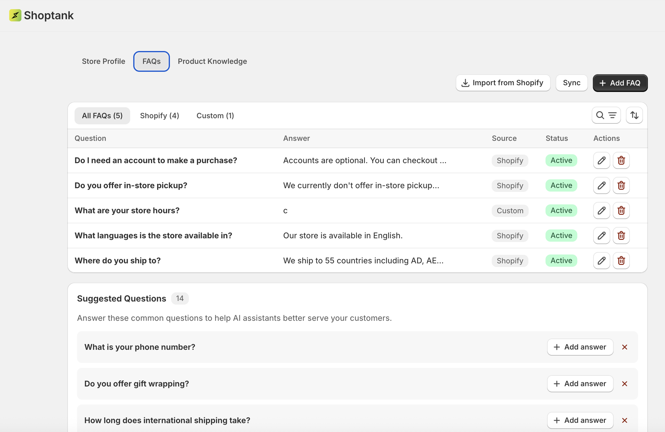 Beyond the core knowledge base, FAQs are the most underused AI visibility tool available to Shopify merchants.